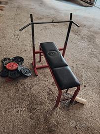 Panca multifunzione, inclinabile, con bilanciere e annessi pesi;