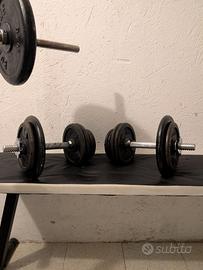 Vendo i miei attrezzi da palestra per inutilizzo, ideali per chi vuole allestire uno spazio d’allenamento completo a casa. Preferisco vendere il set in blocco a 350€, ma sono disponibile a valutare offerte per i singoli pezzi se siete interessati a qualcosa di specifico. L'attrezzatura va vista dal vivo e ritirata sul posto. Disponibile comunque a effettuare il trasporto a domicilio con un extra di 20€ se siete in zona. il set comprende: - Panca - Panca addominali - Sbarre Supporti Squat rack - Prese per piegamenti a corpo libero - Strap/cinghie domyos esercizi a corpo libero - Corda in gomma - Sbarra + ganci per trazioni a muro - Bilanciere (acciaio) - 5x manubri (acciaio) - 2x 10kg Pesi ghisa - 2x 5kg Pesi ghisa - 6x 2kg Pesi ghisa - 12x 1kg Pesi ghisa - 4x 1kg Pesi ghisa gommato - 4x 0.5kg Pesi ghisa