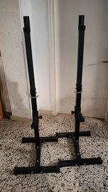 Vendo attrezzi palestra: panca, pesi, bilancieri, rack per trazioni e squat, porta bilancieri tappetini di gomma e altro materiale.