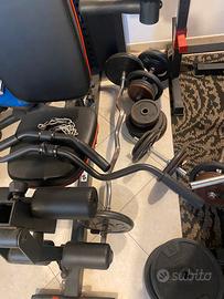 Palestra adidas, panca regolabile con bilancere diritto, seconda panca regolabile, supporti per bilancere abbinabili alla panca o utilizzabili per squat,bilacere custom, bilancere diritto,varie maniglie per pulley, dischi per bilancere, manubri vari, dischi vari da 10 kg, da 5 kg, da 2 kg, da 1 kg,