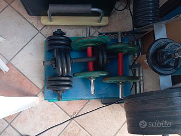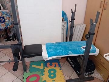 Vendo panca multifunzione con bilanciare da kg 10 più 4 manubri e una rastrelliera con annessi pesi per un totale di ca 120kg molto utile per chi non può andare in palestra