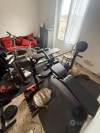 Vendo attrezzi per la palestra 1 kettleball da 20 kg 1 kettleball da 16kg 1 kettleball da 8kg 1 panca scott con leg curl 1 panca normale 4 bilanciere dí diverse lunghezze tra cui uno Z 4 manubri con varie kg in ghisa 10, 5 2 e 1 e da mezzo kg Triangolo porta ghisa Quadrati tappeti per il pavimento circa 8 m2 Postazione per trazioni Tutto per 500 euro trattabili