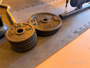 Tappeto nero Bilanciere ew Pesi in ghisa: 2x5kg + 6x1kg Panca con manopole ancora incartate