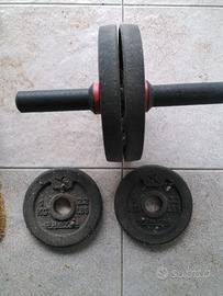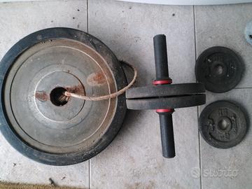 Vendesi, come da foto, una ruota perr addominali, un peso da 20 kg, uno da 20 kg, due da 2 kg e due da 1 kg. Disponibile alla consegna
