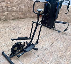 Stazione multifunzionale fitness. Attrezzi sportivo a carico e cyclette idelae per crearsi una piccola palestra a casa. Misura degli attrezzi 150 * 200.