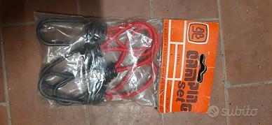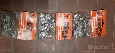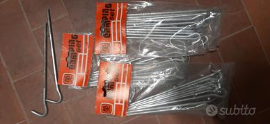 vari pezzi ancora imballati per campeggio. 8 elastici, 8 spilloni 18cm, 24 spilloni 24cm, 16 borchie parastrappi x tenda, 4 placche x sabbia, 10 picchetti 24cm, 6 picchetti 24cm, 36 spilloni 18cm, 8 ganci a S, 4 elastici tensione 12cm, 4 cappucci parapioggia, 12 fascette per pali telescopici, 1 pinza x pali, 1 martello in plastica con cava picchetti