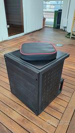 La seduta girevole con bordo rosso permette di eseguire Russian twist e torsioni addominali in modo fluido, mentre la struttura stabile offre un supporto eccellente per step, salti, push-up e dip.