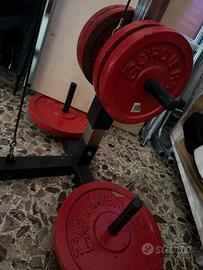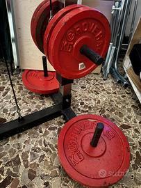 Attrezzo per spalle gambe tricipiti e bicipidi Una multifunzionale un po datata ma con pesi da 10kg e da 5kg