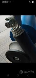 attrezzo per l'esecuzione di addominali con supporto per la schiena a 5 rulli rotanti. Sedile imbottito e maniglie laterali per la tenuta. Unico difetto dado laterale non originale (vedi ultime 2 foto) dimensioni 68×60×40