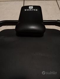 Vendo praticissimo attrezzo per gli addominali. Marchio Domyos. Ideale per rinforzare i muscoli, senza sovraccaricare la colonna vertebrale. Con un confortevole cuscino imbottito per l' appoggio del capo. Richiudibile, pertanto poco ingombrante. Dimensioni da chiuso: larghezza 60 cm lunghezza 73 cm (con tappetino ripiegato). Ci sta comodamente sotto al letto. Usato pochissimo, come nuovo