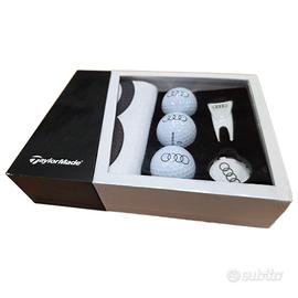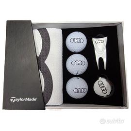 Kit 3 palline Taylor made logate AUDI , gettone marca pallina , alza pitch mark e tovaglietta per sacca il tutto logato audi