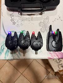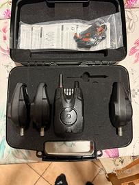 Vendo fantastici avvisatori fox mx 3+1, non hanno bisogno di presentazioni veramente perfetti sia come primo approccio nel mondo della pesca e sia per pescatori esperti, 2 tipi di sensibilita , una manopola graduata per il volume e l'altra per regolare il tipo di suono a piacere e 6 tipi di colorazione, inoltre ha la possibilita di attaccare anche le scimmiette che si illuminano al buio , centralina che puo arrivare fino a