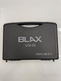 Sensori praticamente nuovi, cambio per passaggio a set Blax da 4 canne. Caratteristiche principali : led blu hi-viz, 4 livelli di volume, 4 livelli di tonalità, 4 livelli di sensibilità, accensione dei led 20 secondi dopo una premuta, modalità luce di cortesia, avviso batteria scarica, presa jack 2,5 mm, portata di 150 m, vite di fissaggio inox, struttura stampata in abs ad alta resistenza agli urti.