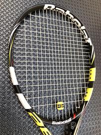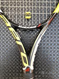 In ottimo stato usata pochissimo, sul telaio presenti leggeri segni d'usura, incordatura nuova, manico L 2 - 4 1/4 rivestito con un overgrip nuovo.