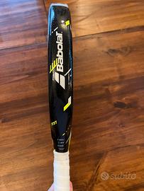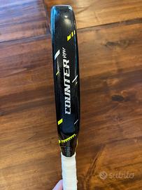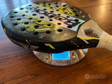 Vendo causa inutilizzo, racchetta con un peso molto leggero come si vede nella seconda foto. Ha una piccola sbeccatura (vedi foto). Per ulteriori informazioni scrivetemi pure in privato.