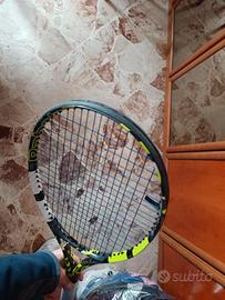 come da titolo , Babolat pure aero 100 modello 2023 (penultimo) , piatto 100 , 300g. Manico 3 con corde nuove ibrido monofilamento/multifilamento 22,5/23,5 kg , corde con solo 1 ora di prova.