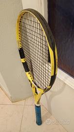 Vendesi babolat aero drive di peso 270 grammi non incordata, manico 2 e grip seminuovo. Per passaggio a racchetta da 300 grammi. Bene tenuta perché seconda racchetta di giovane agonista. Possibile spedirla in coppia con altra racchetta identica di cui potrete trovare descrizione dal solito inserzionista. La coppia viene 100 euro mentre per il singolo invio sarebbe 55 euro a racchetta. Accordata con mono filamento con tensione 20 kilogrammi