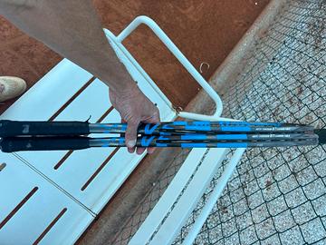 Coppia di babolat 98 grip 3. Qualcje graffio esclusivamente per gioco mai sbattute. Integre e appena incordate con Signum Pro minofilamento a 21 kg.