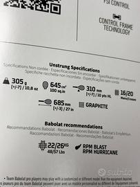 Nuova Babolat Pure Strike 2025 Peso grammi 305 Piatto 100 Schema corde 16x20 Listino 280 Manico L2