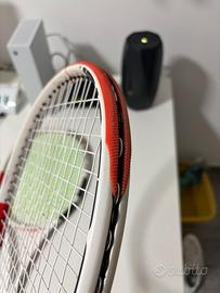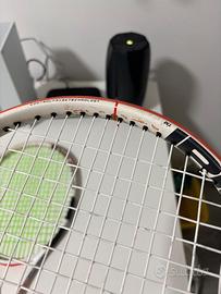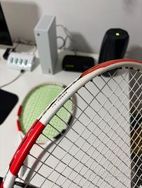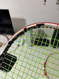 - La prima con corde Tecnifibre Icecode 1.25 tirate a 21 kg (bianche). In una foto si vedono dei segni rossi sulla testa del telaio , è colla di pesi che erano presenti in quell'area.