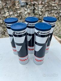 Vendo 5 tubi nuovi di palline da tennis, (20 palline in totale) BABOLAT TEAM per tutte le superfici.consegna a mano zona avezzano, Sulmona e pescara