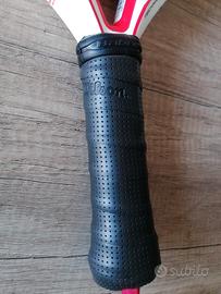 Vendo poiché non adatta al mio livello di gioco. La racchetta è stata acquistata il 16 di Gennaio al prezzo di 156 € ed è stata usata solamente per 3 volte. Come illustrato in foto presenta sulla testa un salto di vernice coperto successivamente da me con dello smalto bianco. La racchetta è perfettamente integra, ha soltanto quel inestetismo, ma niente di più. Come si può notare l'overgrip da me aggiunto è nuovissimo a prova del fatto che la racchetta è stata usata veramente poco. È equipaggiata con adesivo trasparente para colpi.