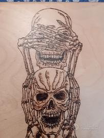 Tavola in legno, per allenamento propriocettivo costruita e decorata da artigiano locale, completa di rullo.