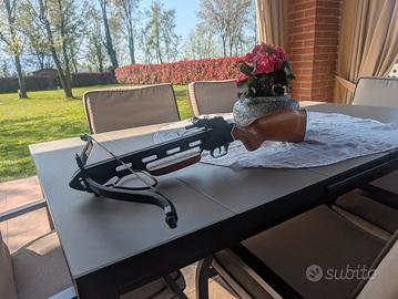 Struttura in metallo Calcio ergonomico in legno Mirino regolabile Facile da armare condizioni : pari al nuovo vendo per inutilizzo Completa di scatola originale e accessorio per il montaggio della corda