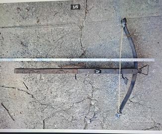 balestra in legno decorato funzionante ben realizzata e ben conservata con sei dardi in custodia