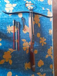 Balestra professionale 180lbs in legno e metallo slitta portafreccia e puntale porta archetto/reggistaffa armamento in metallo, corpo in legno mire metalliche, 3 frecce alluminio complete do punta svitabile, staffa di caricamento reclinabile, minuteria x montaggio arco, arco in fibra 180lbs ASTENERSI PERDITEMPO E/O CURIOSI PREZZO LEGGERMENTE TRATTABILE