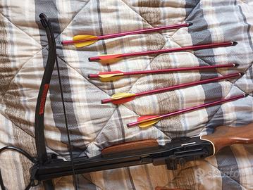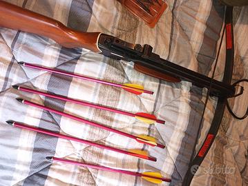balestra legno e alluminio 5 frecce in alluminio svitabili punte caccia 3 più custodia.ha lanciato una sola freccia una volta.consegna a mano.