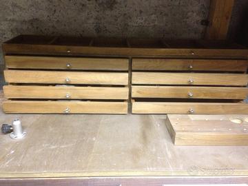 Banco per costruzione artificiali da pesca, completo di supporto per morsa, porta strumenti e 8 cassetti per riporre i materiali da costruzione Misure 80x47 h20 cm Prezzo 50€ Per informazioni chiamare o scrivere al 3455227962
