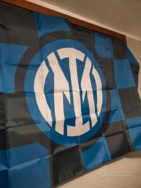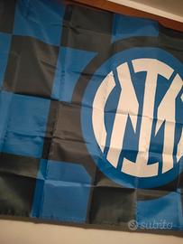 Bandiera Inter 90 x 150 come foto con asola per asta nuova impacchettata disponibili 10 pezzi a scacchi con logo Inter nero azzurro