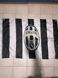 bandiera della Juventus, con stemma vecchio, un buco piccolo nell'angolo basso a sinistra
