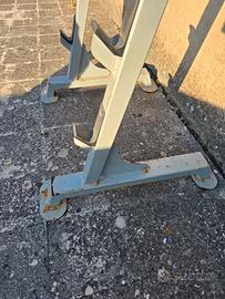 rack porta bilancieri multiplo di metallo resistente unico difetto, leggermente arrugginito. solo ritiro, no consegna