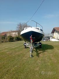 vendo pilotina Plastilupi 5mt x pesca o famiglia,riverniciata,usata in fiume, con motore Johnson GT 737 25/40 trim elettroidraulico con libretto+ motore ausiliario 5 cv con libretto+ altro motore x ricambi,ecoscandaglio,luci di via,ancora,pompa di sentina,kit 3 miglia,wc chimico, mezzomarinaio,serbatoio carburante fisso + 1 tank da 22 lt,con carrello LBn 650 da kg860ptt basculante + verricello elettrico 3 velocita', cerchi in lega, gommato, sostituiti ceppi freni, manicotti timone , pistone repulsore ,luci di ingombro, revisionato fino a febbraio 2028