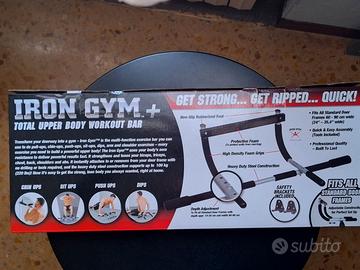 L'Iron Gym Total Upper Body Workout Bar è un dispositivo multifunzione per l'allenamento della forza della parte superiore del corpo attraverso pull up, chin up e lavoro addominale. Questa versatile barra per trazioni si può usare appesa in alto sullo stipite della porta o a terra.