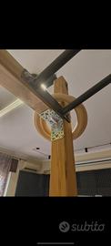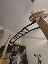 VENDO: bellissima struttura. fatta a mano. con barra multipresa, per qualsiasi tipo di allenamento + anelli in legno con le loro relative fasce + timer per l'allenamento + fasce elastiche + braccia originali della barra multipresa che in foto non vedi.