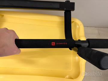 Vendo per inutilizzo barra per trazioni domyos da applicare sullo stipite della porta, completamente autobloccante, ottima per allenarsi a casa, ritiro a mano, no perditempo.