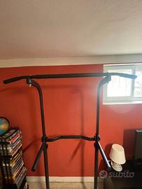 Barra per trazioni con maniglie per l'esecuzione dei dip. Possibilità di regolazione dell'altezza della barra.