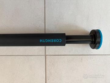Barra per trazioni PULL UP BAR LOCK da porta con blocco 100 cm Corength. Dimensioni della barra per trazioni - La barra per trazioni 100cm si allunga da 95 a 120cm. - Va bene per uno spazio minimo di 95cm e pesa 2,6kg. - Le estremità su ciascun lato hanno un diametro di 4,7cm. - Diametro della barra 32 mm.