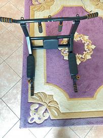 Barra per trazioni multifunzione 7 in 1 da fissare al muro. Multifunzione: Consente di eseguire trazioni, dip, sollevamenti delle gambe e altri esercizi per la parte superiore del corpo grazie alle diverse posizioni di impugnatura. Struttura: Realizzata in acciaio resistente con imbottiture ecologiche per schienale e braccioli per garantire comfort e durata. Installazione: Si monta a parete con occhielli per sacchi da boxe o bande di resistenza. Nuovo mai usato, montato esclusivamente per effettuare le foto.