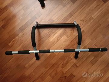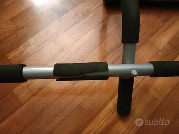 Vendo barra per trazioni per porta. Usata ma in ottime condizioni e perfettamente funzionante. Unico difetto una degli agganci per le mani è rotto (foto 3) ma è utilizzabile tranquillamente anche così.