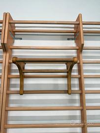 L’attrezzo può essere facilmente fissato su diverse strutture — come spalliere, pareti attrezzate o telai stabili — offrendo un’ampia gamma di esercizi per il rinforzo della parte superiore del corpo e la mobilità.