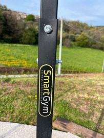 Barra struttura per trazioni smartgym In ottime condizioni Smontabile Larghezza totale 121cm Altezza totale 230 cm allungabile Base lunghezza 101cm Diametro tubo 3,5 cm Non spedisco