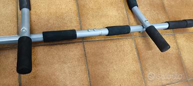 Barra per Trazioni, Flessioni e Addominali da agganciare alla porta, combina esercizi per bodybuilding, pull up, trazioni e tanto altro. Barra dalla struttura solida in acciaio rinforzato che garantisce una capacità di resistenza elevata: fino a 120 kg. Rivestimento che previene ruggine e corrosione per una struttura destinata a durare nel tempo.