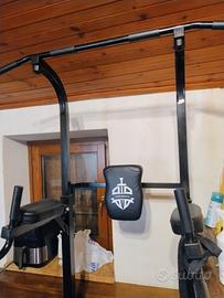 Power tower dip station Attrezzo per allenamento della forza Capacità 204 KG. Materiale : Acciaio al carbonio. Dimensioni : 104,6L x 100,8l x 224H cm Prodotto usato ma in condizioni ottimali.