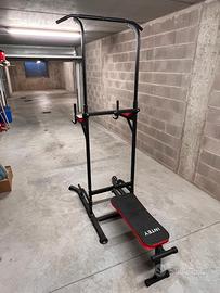 Cuscini panca e poggia avambracci confortevoli durante gli esercizi e barra trazione ricoperta da gomma antiscivolo.