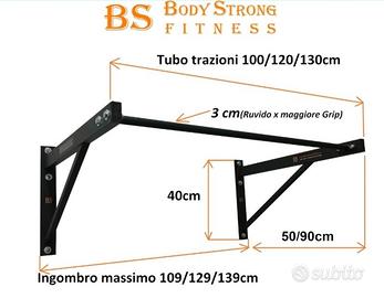 Barra Trazioni pull up calisthenics Marca Bodystrong Da appendere al muro, Solida e robusta. Pari al nuovo comprensiva di barre per il fissaggio.