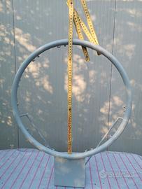 Vendo cerchio riverniciato grigio per pallacanestro senza rete, come da foto. Misure interne netto cerchio cm. 46, esterno cm. 50,5. Peso kg. 2.2. Prezzo trattabile.